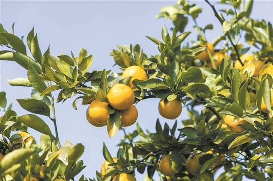 持续的冬日暖阳让丹霞贡柑由橘绿渐变为橙黄 |