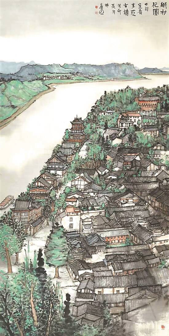 李庄古镇(纸本水墨设色) □林容生