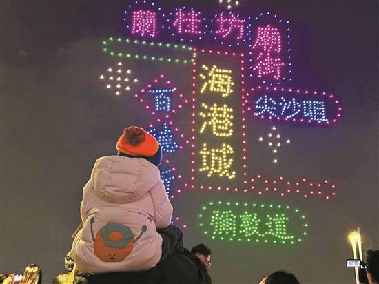 据新华社电 香港“18区日夜都缤纷”活动28日正式启动。据特区政府政务司司长陈国基介绍,本次活动包罗万象,适合不同年龄层的市民和游客参加。这些项目动静皆宜,有市集嘉年华、艺术展览、音乐表演、运动体验等;同时古今交融,呈现各式各样的传统文化和地区特色,还引入了很多新元素。 27日和28日晚在香港湾仔海滨举办的“缤纷香港”大型无人机灯光秀,旨在支持响应“日夜都缤纷”主题活动、迎接农历新年,是香港推介旅游的创新之举。 28日晚8时15分许,千余架无人机在维港夜空组成海洋公园、维港天际线、霓虹灯招牌、粤剧花旦等图案,让观众充分体验传统文化与现代科技的创新融合。 当灯光秀进入尾声,维港上空出现由无人机队组成的“空中二维码”。游人扫描“空中二维码”可了解相关旅游信息,还有机会领取商家提供的演出、展览、音乐会、购物等优惠券。 “色彩太漂亮了”“图案好逼真”“画面很震撼”,当机队缓缓降落,掌声欢呼声响起,湾仔海滨变成欢乐的海洋,许多人久久不愿离去。