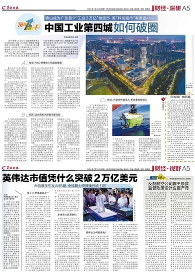 羊城晚报记者 胡彦 GDP首破1.3万亿元、国家高新技术企业总数突破1万家、企业标准“领跑者”数量连续三年居全国第一……开年以来,佛山喜讯频传,尤其是2023年佛山规上工业