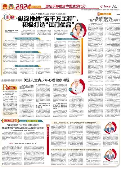文/图 羊城晚报记者 陈卓栋 通讯员 江府信 十四届全国人大二次会议期间,全国人大代表、江门市市长吴晓晖接受羊城晚报记者采访。她表示,去年江门全力推动“百县千镇万村高质量发