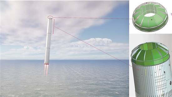 箭元科技提供的设计图显示,试验火箭的货运仓位于箭体头段 |