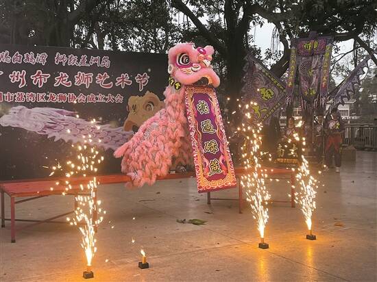 羊城晚报讯 记者周欣怡、朱绍杰摄影报道:3月30日,广州市荔湾湖公园菱洲岛南国醒狮传承基地锣鼓喧天、龙腾狮舞,吸引众多市民驻足围观,欢呼叫好。由广州市荔湾区非遗保护中心联合广州市龙狮协会主办的“首届广州市龙狮艺术节”在此举行,荔湾区的华林、南大、中华、天鸿等龙狮团队与来自广州市黄埔区、白云区、从化区、增城区、花都区的龙狮劲旅同台献技,带来一场精彩绝伦的文化盛宴。 活动现场,荔湾区龙狮协会挂牌成立,广州市龙狮大家庭新增一位重要成员,将助力荔湾区文化高质量发展,阐释敢为人先、积极进取的醒狮精神。 在现场,刚刚获得世界夜光龙锦标赛殿军的香港中国国术龙狮总会洪凤派舞龙队,专程前来广州开展青少年交流活动,并带来精彩的舞龙表演,赢得满堂喝彩。 记者留意到,不少狮队带来的表演都有故事情节,《遍地生财,财源滚滚来》《步步高》《雄狮勇攀擎天柱》《金锁解匙宝中宝》等节目,不仅通过细致入微的表演把狮子的神态表现得栩栩如生,更有着喜庆吉祥的美好寓意。 据荔湾区非遗保护中心主任谢德明介绍,舞龙舞狮是我国历史悠久的民间艺术和民俗传统,在荔湾区拥有广泛的群众基础和浓厚的文化氛围。经过不断创新发展和以老带新,龙狮文化因其喜庆和观赏性,成为荔湾文化的重要代表,备受广大群众喜爱。 “早在2013年,荔湾醒狮已成为广州市市级非遗项目。荔湾区龙狮协会的成立,更是荔湾文化高质量发展的重要举措,将为推动人文湾区的建设、促进非遗龙狮的传承和发展贡献荔湾龙狮力量。”谢德明说。 广东醒狮省级传承人、广州市龙狮协会会长赵伟斌表示,今年是广州市龙狮协会成立5周年,将举办一系列庆祝活动,接下来将举办高桩狮王争霸邀请赛、广州市龙狮公开赛、第八届广州市青少年醒狮表演赛、“一带一路”醒狮发展论坛、粤港澳大湾区龙狮文化交流活动等,将醒狮精神传播出去,让醒狮文化走入人心、走向世界。