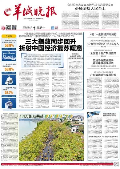 中共广东省委主管、主办 羊城晚报社出版 1957年10月1日创刊 2024年4月1日 甲辰年二月廿三 星期一 报料热线:(020)114