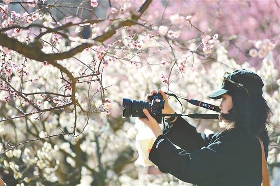 山东青岛中山公园,一名游客拍摄梅花 新华社发 |