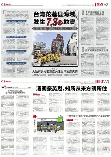 2024年4月4日/星期四/要闻编辑部主编/责编 袁婧 / 美编 刘栩 / 校对 姚毅