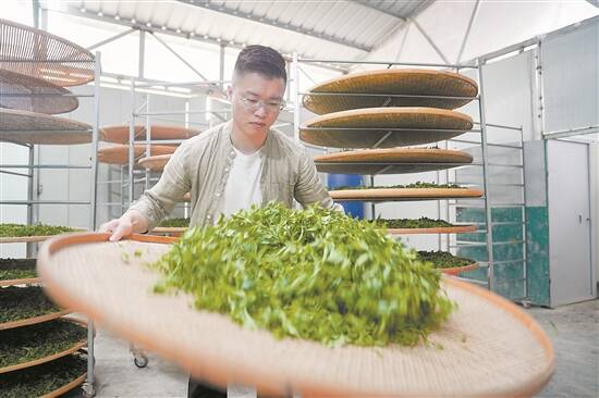 图/羊城晚报记者 蔡嘉鸿 文/羊城晚报记者 曾柯权 春和景明,草木萌动。清明节前后,潮州凤凰山春茶迎来了采摘的季节。在凤凰山放眼望去,郁郁葱葱的茶树尽收眼底,翠绿无边;采茶人的身影在茶树丛中起起伏伏,忙碌地收获着大自然给予凤凰山的馈赠。茶树的香气缓缓在鼻尖浮动,仿佛整个凤凰山都萦绕在茶香之中。 清明节期间,凤凰山深处,年轻的制茶人李烁正在他的工作室中忙碌。刚刚从高山上摘下的青翠茶叶,正在他手中渐渐蜕变成畅销海内外的凤凰单丛茶。 做青、炒青、揉捻……一系列繁杂的工序,三十岁出头的李烁驾轻就熟,仿佛一个制茶多年的老师傅。而数年前,他还是一个大城市中“大厂”的员工。就读于中山大学、毕业后获得高薪工作的他,无疑是众人眼中飞出大山的“金凤凰”。但让许多人意想不到的是,2016年年末,李烁毅然辞职,回到家乡潮州种茶。 放弃大城市里高薪的工作回乡种茶,当中阻力可想而知。李烁坦言,自己回乡创业的决定,连父母也不理解,为何已经在大城市中立足的他,要回乡从事父辈一辈子的行业? “我是在茶杯中泡大的。”李烁表示,自己在父母的茶园中长大,自小和茶叶打交道。高考结束后,他便开设网店,帮助父母卖茶叶。“因为有家中的茶园,加上网店做得不错,而且我预感到凤凰单丛茶的市场将越来越好,所以便回来了。”李烁介绍说,正是为了这杯茶,他毅然辞职回乡。 面对凤凰群山,回乡后的他全身心投入到单丛茶的创业事业,从茶园种植、茶学钻研,到产品创新、品牌建设、推广服务,全链条潜心研究,并创办了自己的单丛茶品牌,在线上收获了自己的一众拥趸。 李烁表示,由于大学期间攻读环境科学领域,所以在物理化以及茶树相关的大气土壤水等环境因子方面,有科研理论基础优势。李烁介绍说,他在制茶的过程中,会将自己的理论基础和茶农的经验进行结合,不断改进实际操作,以应对自然条件的变化。 近年来,潮安区挖掘凤凰山脉资源禀赋,举全区之力建设绿色生态、产业高端、文旅兴旺的茶旅走廊。发掘凤凰山独特优势,做大做强茶产业。茶旅走廊打造得如何?大山中的“茶人们”最有发言权。 “刚开始从大城市回来的时候有一些不适应。但现在创业环境比以前好很多。”李烁说道。近几年来,随着当地对凤凰山片区的支持力度不断加大,越来越多像他一样的年轻人也纷纷回乡工作、创业。光他的团队中,就有十来名返乡大学生。“随着相关部门大力推广单丛茶的举措加强,凤凰单丛茶的名声越来越响。当地的物流、信息、交通、人才氛围等方面,都和大城市没有太大区别了。”李烁说道。