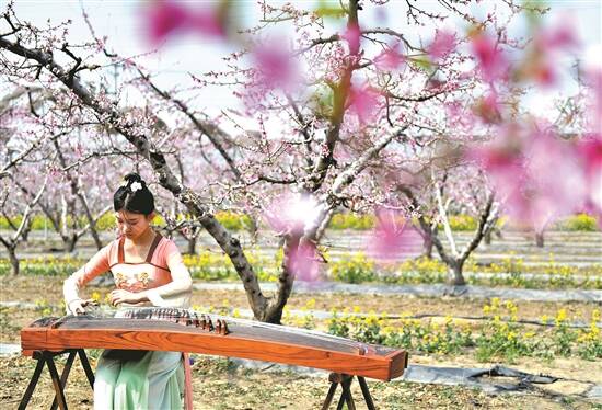 河北省深州市蜜桃观光园万亩桃花盛开 图/新华社 |