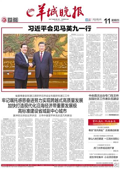 中共广东省委主管、主办 羊城晚报社出版 1957年10月1日创刊 28℃ 21℃ 2024年4月11日 甲辰年三月初三 星期四 责编/徐雪亮