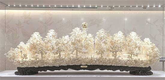 策划:陈桥生 林洁 统筹:邓琼 侯恕望 吴小攀 执行统筹:朱绍杰 麦宇恒 文/羊城晚报记者 周欣怡 朱绍杰 图/羊城晚报记者 王子桐 梁喻 随着白鹅潭大湾区艺术中心启用开放,广东省非物质文化遗产馆也将开馆迎客。四楼“湾区同心”展厅,精选粤港澳三地共有的粤剧、武术、醒狮等非遗代表性项目,将湾区人民共有的文化生态一一呈现。入口处陈列的一座气势磅礴的大型骨雕作品《湾区同心》,可视作粤港澳大湾区自然和人文壮阔景观的一道缩影。 该作品由中国工艺美术大师、象牙雕刻国家级代表性传承人张民辉,及其领衔的广州市荔湾区花城博雅工艺厂制作团队共同创作。 日前,张民辉接受羊城晚报记者专访,从创作思路、技艺特点、艺术特色等方面解读《湾区同心》作品的精巧及牙雕技艺传承的故事。 一组数据展现体量恢宏 《湾区同心》犹如一场穿越山海之旅:广州镇海楼、香港金紫荆广场、澳门大三巴、深圳前海国际会议中心、珠海大剧院等湾区地标,与山水、花鸟、树木等自然风光有机融合。其体量之磅礴、雕工之精湛,极具视觉冲击力,大湾区11个城市的地标建筑逐一在作品中生动呈现,既表现出大湾区丰富的历史文化,又具现代创新风采。 有这样一组数据,或许能够展现《湾区同心》的体量恢宏——张民辉介绍,为完美复刻大湾区的名山秀水,作品集合20多名工匠、共用工时约3000天制作而成,使用的牛骨材料达到13吨。整件作品长4.98米,上面的人物有20000多个,此外还有215幢建筑物、7000多棵树、近千朵花…… “我们用牛骨作为整体造型基础,运用牙雕技艺中的圆雕、浮雕、镂空雕和镶嵌等手法来表现建筑物、人物、自然景观。从设计、镶嵌、雕刻到组装,每个步骤都进行了细腻的融合,以期淋漓尽致地展现南派牙雕剔透玲珑、精雕细刻的特点。”张民辉说,从建筑到人物,每个细节都包含着精益求精的思考,只为完美表现我们生长于斯的大湾区。 “以骨代牙”传承南派绝技 作品顶部高悬一个猛犸象牙球,内部结构多达31层。“层层转动的象牙球是南派牙雕中的重要品类。”张民辉介绍,牙球技艺是广州牙雕的独门绝活。广州牙雕又称南派牙雕,2006年被列为第一批国家级非遗项目。在宋代,广州工匠已经能制作出内有三层且层层可转动的象牙球。到了清代,广州“一口通商”,无论出口贸易还是进贡宫廷,广州牙雕都居全国之首,名扬海内外。 在国际保护濒危野生动植物公约颁布后,象牙贸易遭到全面禁止,中国的牙雕生产市场逐渐萎缩,广州牙雕面临困境。但张民辉坚信,骨雕是继承和发扬牙雕技艺的一种形式和途径,二十多年来他矢志不移地创新骨雕工艺,默默传承着传统广州牙雕的旷世绝技。“在历史上,牙雕和骨雕工艺相似,却发展不平衡。象牙禁令催发中国骨雕踏上了新征程。”张民辉说。 经过多年努力,张民辉用“以骨代牙”的方式,开拓骨雕工艺的创作和创新。他和他的团队已能做出玲珑剔透、色如象牙的大型骨雕艺术品。“作品《湾区同心》就是用不同材料(猛犸象牙和牛骨)创作并传承了千年牙雕技艺的一件代表之作。技艺不能丢,如何继续传承下去,是我们传承人义不容辞的责任。”