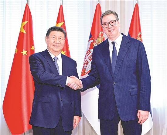 新华社贝尔格莱德5月8日电 当地时间5月8日上午,国家主席习近平在贝尔格莱德塞尔维亚大厦同塞尔维亚总统武契奇举行会谈。两国元首宣布,深化和提升中塞全面战略伙伴关系,构建新时代中塞命运共同体。 5月的贝尔格莱德,阳光明媚。塞尔维亚大厦前,中塞两国国旗迎风飘扬,仪仗队威武雄壮。习近平和夫人彭丽媛乘车抵达时,塞尔维亚总统武契奇和夫人塔玛拉在下车处热情迎接。 武契奇为习近平举行隆重欢迎仪式。两国元首共同登上检阅台,军乐团奏响中塞两国国歌,鸣10响礼炮。习近平在武契奇陪同下检阅仪仗队。两国元首分别同对方陪同人员一一握手致意。 武契奇陪同习近平来到政府大厦平台。大厦广场上,一万五千名塞尔维亚民众挥舞中塞两国国旗,对习近平表示最热烈的欢迎。习近平向欢迎人群挥手示意。广场上响起雷鸣般的掌声,欢呼声此起彼伏,经久不息。 欢迎仪式后,两国元首分别举行小范围会见和大范围会谈。 习近平指出,我很高兴应武契奇总统多次邀请,时隔8年再次到访美丽的塞尔维亚。武契奇总统率多位重要政府高官赴机场迎接,特别是刚才为我举办盛大欢迎仪式,使我深受感动,深切感受到塞尔维亚人民是中国人民的好朋友,对中国拥有真挚的友好感情。 习近平强调,中塞铁杆友谊历经国际风云变幻考验,有着深厚的历史底蕴、坚实的政治基础、广泛的共同利益、扎实的民意根基。近年来,我同总统先生共同引领两国关系实现跨越式发展,取得历史性成就。特别是2016年中塞建立全面战略伙伴关系以来,双边关系内涵更加丰富、外延持续拓展,已经成为中国同欧洲国家间友好关系的典范。行胜于言。中方愿同塞方一道,继续风雨同舟,命运与共,秉持铁杆友谊精神,坚持和发展中塞友好,共同维护两国根本和长远利益,并肩追求各自国家发展和民族振兴,携手推进新时代中塞命运共同体建设。 习近平强调,塞尔维亚是中国在中东欧地区的首个全面战略伙伴。双方合作为各自发展振兴注入强劲动力,为两国人民带来实实在在的利益。新形势下,塞尔维亚成为首个和中国共同构建命运共同体的欧洲国家,充分体现了中塞关系的战略性、特殊性和高水平。新时代中塞命运共同体是中塞铁杆友谊的升华,也代表了双方共同的价值理念和目标追求,即共谋发展、合作共赢、彼此成就,这是中塞两国以及世界上所有坚持独立自主、追求和平和发展国家的共同愿景。双方要通过构建新时代中塞命运共同体,不断深化拓展高质量共建“一带一路”和中国-中东欧国家合作,助力两国各自现代化进程。 第一,突出两国关系的战略性,把握双边关系大方向。中方支持塞尔维亚坚持独立自主、走适合自身国情的发展道路,支持塞方维护国家主权和领土完整的努力。双方要继续坚定相互支持,深化战略合作,维护好各自政治安全和根本利益。 第二,坚持两国合作的务实性,为两国人民谋福祉。中塞高质量共建“一带一路”合作成效喜人。双方要扎实推进交通和能源基础设施等传统领域合作,如期实现匈塞铁路塞尔维亚段全线通车目标,共同运营好两国合作大项目,打造更多“小而美”的民生项目,持续释放积极经济社会效益。中塞自由贸易协定将于今年7月1日生效,中塞高水平相互开放必将进入新阶段。中方将继续扩大进口塞尔维亚特色优质农产品,愿在未来3年邀请300名塞尔维亚青少年赴华学习交流。欢迎塞方增开贝尔格莱德至上海直航航线,全面深化人文交流。 第三,发扬两国关系的创新性,开辟新的合作前景,将创新合作打造成双边关系新的增长点。中方将在未来3年支持50名塞尔维亚青年科学家赴华开展科研交流访问,愿同塞方加强人工智能领域合作,促进全人类合理发展和应用人工智能。要共同反对霸权主义和强权政治,共同反对集团政治和阵营对抗,维护联合国宪章宗旨和原则,践行真正的多边主义,促进国际公平正义。 武契奇对习近平主席表示最热烈的欢迎,表示,中国是塞尔维亚最真挚的朋友。塞尔维亚是个小国,但中国始终充分尊重塞尔维亚的主权和领土完整,为塞尔维亚经济社会发展提供宝贵支持。习近平主席是伟大的世界领袖。在习近平主席坚强领导下,中国取得举世瞩目的成就,成为世界发展与进步的灯塔,在国际事务中日益发挥重要领导作用。中国共产党不仅为中国人民谋幸福,也为世界人民谋福利。塞尔维亚人民对中国特别是习近平主席充满感激和尊重,为能同中国这样的伟大国家成为铁杆朋友感到由衷骄傲和自豪。塞方坚定支持中国在台湾等核心利益问题上的正当立场。世界上只有一个中国,塞方将继续毫不迟疑、毫不动摇地坚定支持中国。 武契奇表示,中国的投资与合作极大地促进了塞尔维亚的经济社会发展,也提升了塞人民的生活水平。特别是2016年以来,在习近平主席亲自关心和支持下,河钢斯梅戴雷沃钢厂取得巨大经济社会效应,不仅彻底改变了钢厂的命运,也增强了民众的信心和希望。塞尔维亚的未来同中国紧密相连。塞方期待同中方密切各领域、各层级交流,加强在基础设施、新能源、创新、人工智能、人文等各领域合作。积极推进高质量共建“一带一路”,如期完成匈塞铁路塞尔维亚段建设,欢迎更多中国企业来塞投资合作,期待开通两国更多直航,以塞中自贸协定生效为契机,进一步扩大两国经贸合作。今天我们宣布提升塞
