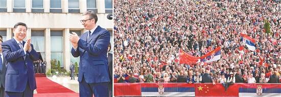 新华社贝尔格莱德5月8日电 5月的贝尔格莱德,草木葱茏,生机盎然。8日上午,正在塞尔维亚进行国事访问的习近平主席与塞尔维亚总统武契奇在会谈前共同走上塞尔维亚大厦平台。在大厦广场早早等待的逾万名塞尔维亚民众瞬时沸腾起来。 “中国!”“塞尔维亚!”“中国!”“塞尔维亚!”灿烂的笑容,明媚的面庞,殷切的期盼——从塞尔维亚各地赶来的民众挥舞中塞两国国旗,齐声呼喊两国国名。 这是真情的交汇,这是友谊的海洋。 平台上,习近平主席微笑着向塞尔维亚民众挥手致意。广场上,人们的欢呼声经久不息。习近平主席和武契奇总统望向热情的塞尔维亚民众,望向充满希望的远方…… 夏日暖阳中,历史一刻由此定格。 “感谢你们这么多人来欢迎我们塞尔维亚的铁杆朋友习近平主席。”武契奇总统同习近平主席并肩而立,向现场民众说,习近平主席在塞尔维亚受到了特别的尊重。 “我为那个场面所震撼,也深受感动。”习近平主席在与武契奇总统会谈后共见记者时,专门提到这一幕。 当天,两国元首共同宣布深化和提升中塞全面战略伙伴关系,构建新时代中塞命运共同体。 “场面如此盛大,在塞尔维亚十分少见。我们见到了习近平主席,感受到了两国友好。我们想让中国知道,塞尔维亚有多么珍视这份情谊。”专门前来欢迎习近平主席的托西奇说,“这不是我个人的想法,而是大家共同的心声。”