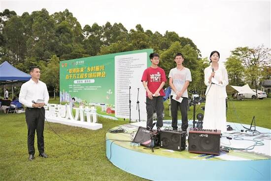 羊城晚报讯 记者鄢敏、通讯员穗团宣摄影报道:在露营地应聘、面试是怎样一种体验?5月11日,“职得你来”乡村振兴“百千万工程”专场招聘会在广州大学城举行。活动采取“露营招聘+求职竞赛+求职营地”模式,共有35家企业提供1715个就业实习岗位,涉及制造业、商贸流通、文化旅游等领域。 当天,草地上的露营招聘区,气氛轻松又活跃。同学们带着简历,坐在帐篷里与企业代表面对面交流,消解了传统面试的严肃和紧张。“新奇、好玩,这是我参加过最特别的一场招聘会。”刚参加完求职竞赛的王同学兴致勃勃地分享感受。 求职竞赛分为职场初体验和职场团战,学生通过无领导小组讨论、团队方案演讲、企业HR互动交流等多个环节,展现自身的才华和潜力,赢得企业青睐。竞赛现场,48名来自不同学校的学生组成6支队伍,接受由12名企业HR组成的评委团的考验,冠军团队成员获得华润三九医药、保利物业、中国人寿等企业提供的终面机会。 据统计,当天活动累计吸引约500名青年大学生,收到300余份求职简历。对此,有同学觉得寓教于乐:“竞赛过程中,能学习到如何在团队中更好地展示自己。评委老师们也从企业角度给我们指出了很多问题,传授了知识,我们获益匪浅。” 值得注意的是,本场招聘聚焦围绕乡村建设、治理等方面的人才需求,发动13家涉农企业参会,引导青年人才助力“百千万工程”和乡村振兴。“我觉得乡村有广阔的发展空间。”来自华南师范大学的小林同学就投了两三家涉农企业,她希望接下来能顺利通过面试。 据介绍,未来将依托“易展翅”平台开展系列专场直播带岗和乡村人才双选会,为青年提供逾五千个优质岗位,进一步拓宽企业引才和青年求职渠道。 据悉,本次活动由共青团广州市委员会指导,广州市青年就业创业服务中心、广州市人力资源市场市总工会分市场、广州市妇女儿童发展中心、广东致学信息科技有限责任公司(易展翅)联合主办。