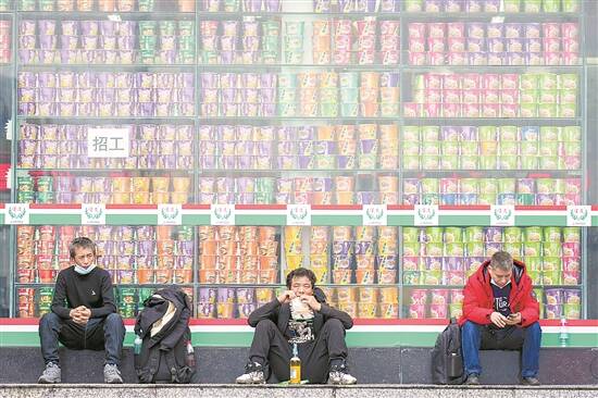 广州火车站外的便利店摆满方便面,这是旅人充饥的主要食物(资料图) |