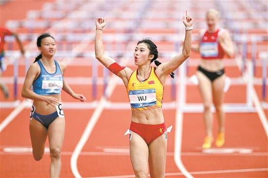 吴艳妮在成都大运会庆祝达标巴黎奥运会 |