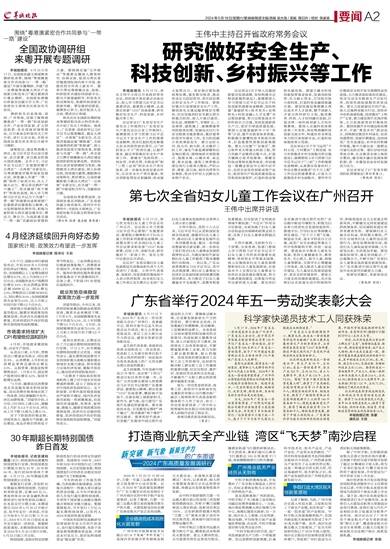 羊城晚报讯 5月17日,省长王伟中主持召开省政府常务会议,同时套开省安委会全体会议,深入学习贯彻习近平总书记重要讲话、重要指示精神,认真落实省委“1310”具体部署,研究做好安全生产、科技创新、乡