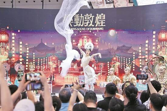 甘肃展位《乐动敦煌》的表演吸引众多观众 羊城晚报记者 王磊 摄 |