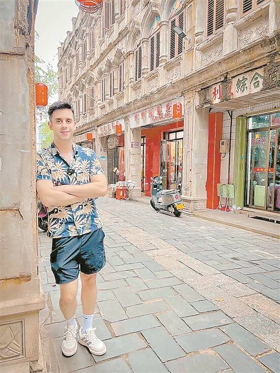 拉斐尔在厦门中山路步行街上打卡拍照 |