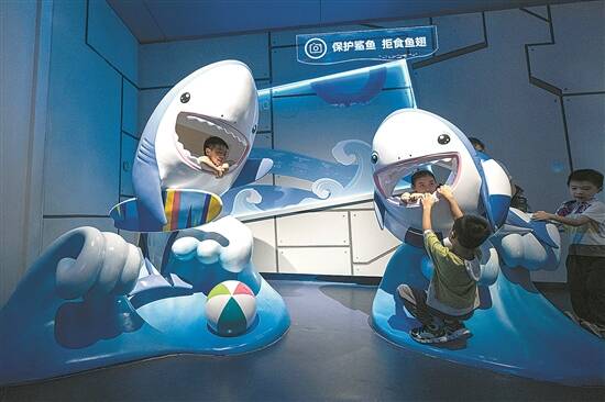 儿童在海洋馆未来海鲨鱼实验室内玩耍 |