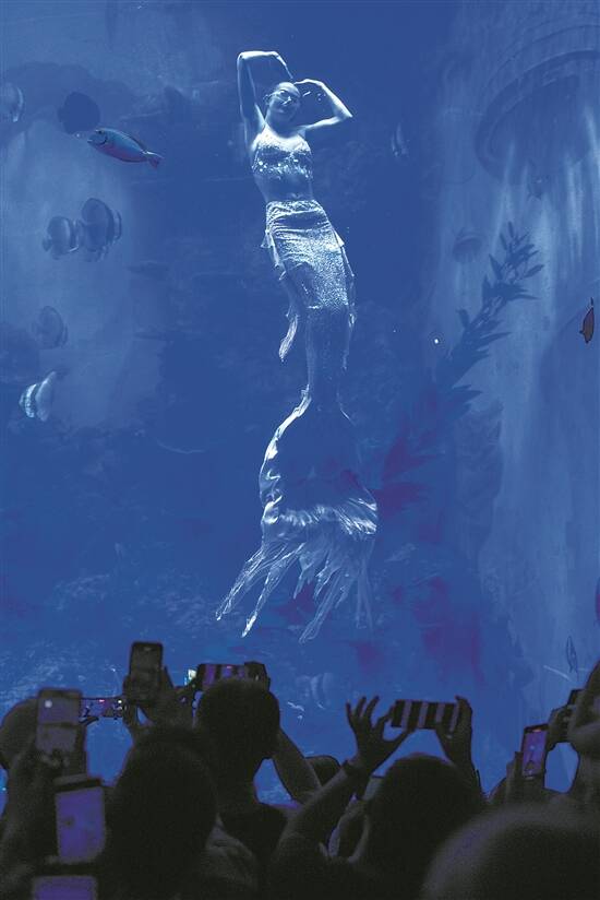 人鱼童话演出中,游客纷纷拍照打卡 |
