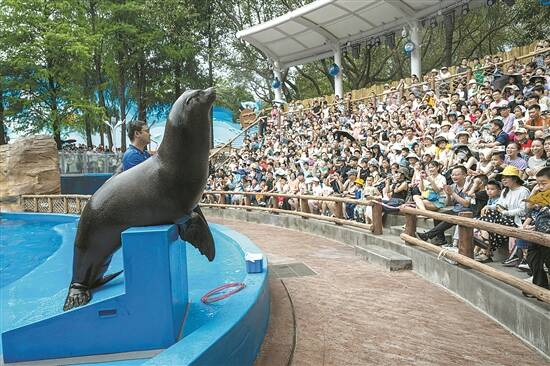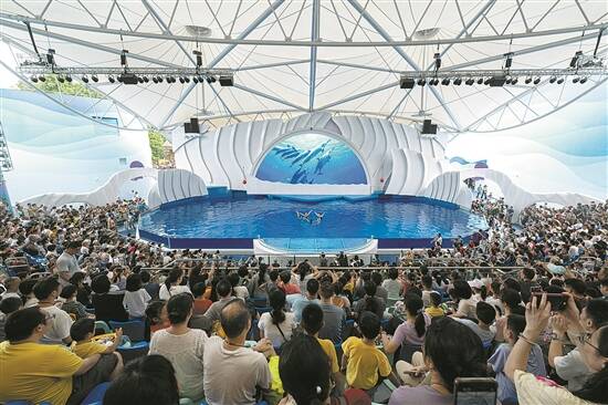 图/羊城晚报记者 钟振彬 潘俊华 文/羊城晚报记者 孙牧 “海龟为什么是绿色的?它们的寿命有多长?性别与孵化温度有哪些关系?”全面焕新的广州海洋馆海龟之家旁,不少小朋友一边与好奇心满满的绿海龟们热情互动,一边品尝着入馆后的第一场海洋知识科普“大餐”。 今年6月,广州城投集团完成了广州海洋馆场馆设备的提质更新,并将于6月25日重新开放。 “水母幻境”里,古老而神秘的水母在变幻的灯光中轻缓漂浮,宛如海洋中治愈系的精灵;18米的超长“珊瑚画廊”内,小丑鱼、鹦鹉鱼等生物游弋于五彩斑斓的珊瑚中,展示着珊瑚这一海洋生物资源库的丰富与奇幻;“蔚蓝新城”旁,赛博海底隧道将多元科技互动与深海场景结合,让游览者能够360°观赏鱼群嬉戏共舞,仿佛置身奇妙缤纷的海洋图景中…… 焕新升级后的广州海洋馆也更为注重服务质量,不断提升游客的参与感和体验感。园区内设有“海洋之家”和“蔚蓝新城”两家文创商店,“海洋时空小队”海豹爆爆、海豚啾啾和白鲸唯唯等全新IP形象,诉说着奇妙的海洋故事;而“海港集市”主题餐厅与“鲸彩定格”留影服务,也将为市民带来味觉与视觉的双重奇遇。 在满目蔚蓝、广袤宁静的白鲸之恋展馆旁,市民潘先生用相机不断定格白鲸的动人姿态。他表示,广州海洋馆为市民提供了真实感受海洋生物的科普空间,“这或许会在他们心中埋下一颗海洋世界的种子,潜移默化中影响和鼓励更多人关注、投身海洋生态保护。”