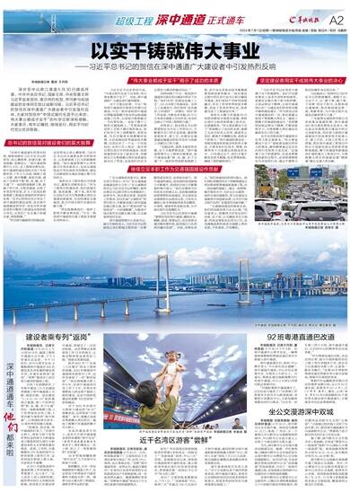 羊城晚报记者 董柳 王丹阳 深圳至中山跨江通道6月30日建成开通。中共中央总书记、国家主席、中央军委主席习近平发来贺信,表示热烈祝贺,并向参与规划建设的全体同志致以诚挚问候。习近平