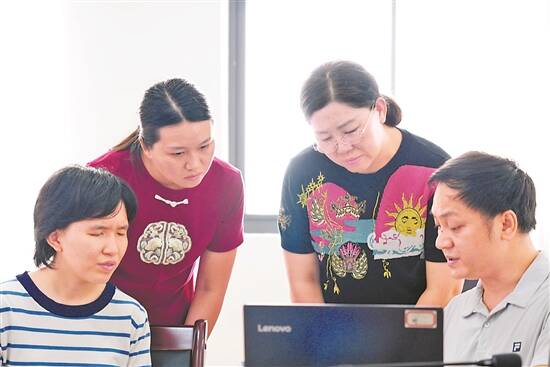 彭香香和老师们在讨论如何填报志愿 受访者供图 |