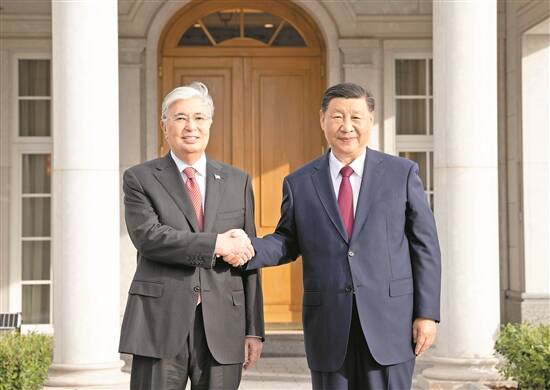 新华社阿斯塔纳7月2日电 当地时间7月2日晚,国家主席习近平应邀同哈萨克斯坦总统托卡耶夫共进晚餐,在愉快温馨的环境中就中哈关系和共同关心的问题进行了亲切友好的交流。
