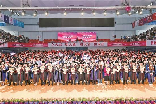 文/ 羊城晚报记者 郑明达 通讯员 李世卓 王若琳 周翊欣 图/ 庞审 7月2日上午,深圳大学2024年毕业典礼在粤海校区元平体育馆举行。 上午9时,在深圳大学学术权杖的引领下,校领导和主礼教授缓缓步入会场,毕业典礼在庄严的国歌声中拉开了帷幕。 典礼上,深圳大学党委书记、中国工程院院士李清泉为优秀毕业生代表颁发表彰证书。校长、中国科学院院士毛军发主持拨穗仪式并颁授学士学位、荣誉学士学位、硕士学位及博士学位。2024年深圳大学毕业研究生数量达到4154名,其中,博士75名,硕士4079名。全日制普高应届本科毕业生共有6570名,截至6月21日,共有4866名全日制普高本科生获得学士学位。此外,深大还授予2422人成人高等教育本科毕业生学士学位。 “今天,我们不喝鸡汤,不诉离殇,在你们即将展开的人生新卷上,我只想为你们写上侠气纵横的4个字:仗剑天涯!”毕业典礼上,毛军发以《仗剑天涯》为题致辞,送一万只鸿雁振翅高飞。毛军发说,剑,作为中华文化的重要载体,凝聚了千古豪杰侠客、文人骚客的精神、情操和追求。他希望即将踏上新征途的同学们,锤炼好、磨炼好、修炼好自己的人生之剑。 毛军发勉励即将“仗剑天涯”的2024届毕业生们,有情怀追求真解决问题,有本领确保问题真解决,有勇气敢于解决真问题。早日闪耀在实现高水平科技自立自强、民族伟大复兴的时代大舞台! “同学们,启程吧,以梦为马,仗剑天涯!”在临别之际,毛军发叮嘱同学们:将毕业礼物启程饭盒打包带上,在人生奋斗的疆场上懂得照顾好自己,好好干饭,好好生活;像种子一样扎根生长,一生向阳!