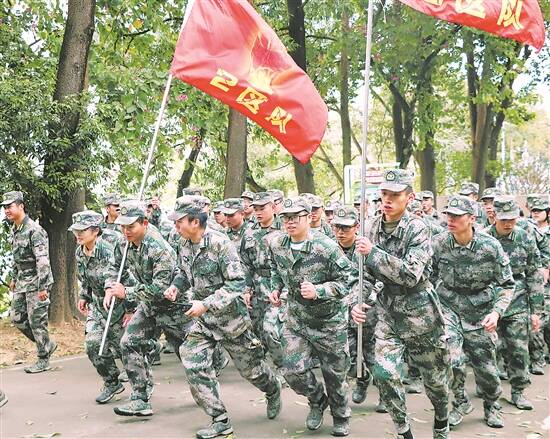 广州南洋理工职业学院学生军政教导大队队员进行行军拉练 通讯员供图 |