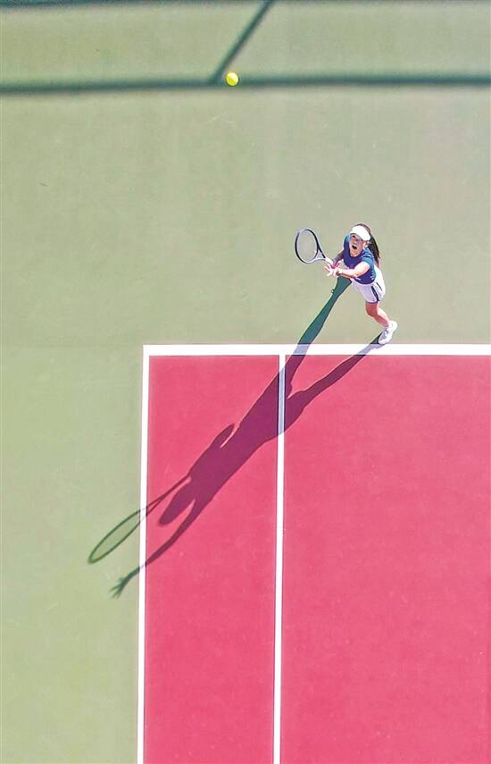 2024年7月6日下午,荔湾区沙面网球场内女孩挥动手中的球拍 |