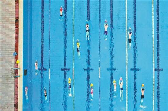2024年7月6日下午,荔湾区西郊游泳场,训练者们井然有序畅游于水中 |