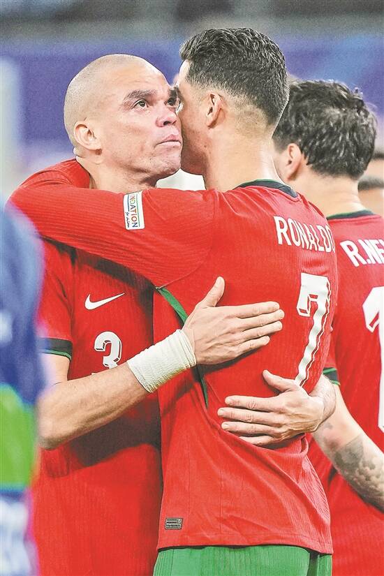 花有重开日,人无再少年。2024欧洲杯四强已经产生,无缘半决赛的C罗、克罗斯、穆勒、佩佩等巨星伤心落泪, 落寞地步出欧洲杯赛场,留下了长长的背影。这些球星伴随着很多球迷的青春记忆。他们都是世界大赛的常客,有些或许还将坚持到后年的美加墨世界杯,但对于四年一度的欧洲杯而言,下一届实在是太遥远了。 C罗和佩佩的兄弟情 在1/4决赛中,葡萄牙经过点球决胜被老对手法国淘汰出局,41岁的“武僧”佩佩赛后痛哭。C罗这次没有流泪,而是上前拥抱安慰好兄弟。1/8决赛对斯洛文尼亚的加时赛上半场即将结束时,C罗主罚的点球被扑出,他当场痛哭,包括佩佩在内的队友们纷纷上前安慰泪流满面的队长。C罗的泪水表明,这位超级巨星非常不甘心自己英雄迟暮,在本届欧洲杯一球未进,除点球决胜外的点球也罚不进了,他很担心葡萄牙因为那次点球不进被淘汰出局。 本届欧洲杯小组赛首轮对捷克的比赛,两位“常青树”C罗和佩佩就一起创造传奇纪录。39岁的C罗戴着队长袖标首发出场,以参加六届欧洲杯打破自己保持的五届参赛纪录,从2004欧洲杯至今,C罗每届欧洲杯都参加。C罗参加五届欧洲杯的原纪录被佩佩追平,佩佩从2008欧洲杯至今每届欧洲杯都参加。葡萄牙主力中卫佩佩,以41岁113天的年龄成为欧洲杯出场最年长的球员,大幅刷新匈牙利门将基拉利(40岁86天)在2016欧洲杯创下的纪录。 无论在国家队还是皇家马德里,C罗和佩佩搭档多年,拥有深厚的兄弟情谊。每当超级巨星C罗受到对手侵犯,“武僧”佩佩经常为他出头。C罗和佩佩代表着葡萄牙足球的一个时代,有泪水也有欢笑。2014世界杯小组赛首战,C罗和佩佩领衔的葡萄牙以0比4惨败于德国,葡萄牙未能小组出线,德国最终夺得那届世界杯冠军。到了2016法国欧洲杯,C罗和佩佩带领葡萄牙在决赛经过加时赛击败东道主法国,夺得队史唯一一座大赛冠军奖杯。2019年6月,葡萄牙又夺得首届欧洲国家联赛冠军。 C罗和佩佩在场外配合也很默契,每当金球奖或世界足球先生投票的时候,C罗往往就临时卸任葡萄牙队长职务,副队长佩佩行使葡萄牙队长的投票职责。按照C罗的意思,佩佩乱投一气,中心思想是不能投C罗的“一生之敌”梅西。 本届欧洲杯很可能是佩佩的最后一届大赛,他那世界级中卫的顶级防守意识还在,但是遇到穆阿尼或塞斯科这种生猛的大中锋时有点力不从心,所以当葡萄牙被法国淘汰之后,佩佩哭得很伤心。两年后,C罗就达到佩佩现在的年龄,葡萄牙队长还希望征战美加墨世界杯,但最好不要像本届欧洲杯这样占着葡萄牙主力位置不放,他应该学会如何当配角。 经典组合克罗斯和莫德里奇 过去10个赛季,两位中场大师克罗斯和莫德里奇为皇家马德里屡立奇功,帮助球队夺得包括五个欧冠冠军在内的多项冠军,他们的俱乐部生涯都堪称完美,但在自己最后一届欧洲杯分别留下遗憾。 克罗斯和莫德里奇年龄偏大,在场上覆盖范围明显下降,皇马主帅安切洛蒂本赛季基本不再安排他们同时首发,一般是轮流出场,通常是由年龄更大的莫德里奇换下相对较为年轻的克罗斯。在皇马中场,防守和拦截的苦差事一般由琼阿梅尼和卡马文加来做,克罗斯负责组织、策划和创意。本赛季在38轮西甲比赛中,克罗斯总共只吃到3张黄牌。 在德国国家队,克罗斯仍是很少被换下的绝对主力。在对西班牙的欧洲杯1/4决赛中,中场发动机克罗斯化身干粗活的中场工兵,五次犯规成为全场最多,至少有三次犯规应该吃黄牌。来自英格兰的“盲僧”主裁判安东尼·泰勒对克罗斯网开一面,只对他出示一张黄牌。西班牙的技术能力明显在德国之上,这是不争的事实,如果让西班牙踢出自己习惯的节奏,德国就会很被动,西班牙曾在2020年11月的欧洲国家联赛以6比0狂胜德国。在德国主帅纳格尔斯曼的部署下,以克罗斯为首的德国中场球员对西班牙坚决上强度,坚决破坏对方的节奏,取得明显成效,可惜最终还是功亏一篑。 在6月2日的欧冠决赛中,克罗斯开出角球,卡瓦哈尔头球为皇马取得领先。两位皇马队友在欧洲杯各为其主,卡瓦哈尔在加时赛伤停补时最后时刻对穆夏拉强硬犯规吃到黄牌,两黄变一红被罚出场,为克罗斯送上在正式比赛的最后一个任意球。如果德国可以把握住这次任意球机会,克罗斯的球员生涯就有望延续,可惜“阿宽”这次定位球没有形成威胁。克罗斯的球员生涯戛然而止,这位中场“节拍器”赛后流下热泪。 莫德里奇本赛季在皇马以打替补为主,但在克罗地亚国家队仍是不可或缺的中场指挥官,足以看出克罗地亚足球人才青黄不接。六年前,老将莫德里奇帮助皇马实现欧冠三连冠,还带领克罗地亚打进世界杯决赛,他因此荣膺2018年金球奖和世界足球先生,打破梅西和C罗对两项荣誉长达10年的垄断。克罗地亚未能在欧洲杯小组出线,队长莫德里奇老了,但雄心犹在。“魔笛”即将迎来39岁生日,他还是希望征战两年后的美加墨世界杯。 穆勒和诺伊尔到了告别时刻 东道主德国被老对手西班牙挡在欧洲杯四强大门之外,未能延续足球强国这些年主办大赛至少打进半决赛的“铁律”。赛后,德国前锋穆勒哭得很伤心,因为这很可能是“二娃”和德国门神诺伊尔的最后一届大赛。 早在2010世界杯,20岁的穆勒就荣膺金靴奖和最佳新秀,他和诺伊尔帮助德国打进世界杯半决赛,可惜输给如日中天的西班牙。姆巴佩说欧洲杯比世界杯更难踢,穆