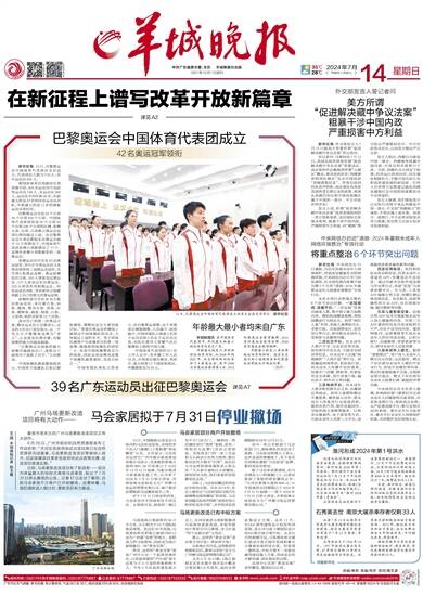 中共广东省委主管、主办 羊城晚报社出版 1957年10月1日创刊 2024年7月14日 甲辰年六月初九 星期日 责编/林圳 美编/肖莎 校对/黄文波