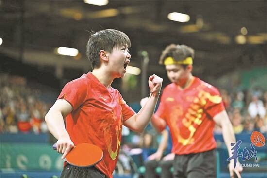 孙颖莎赢球后握拳庆祝 羊城晚报特派巴黎记者 林桂炎 摄 |