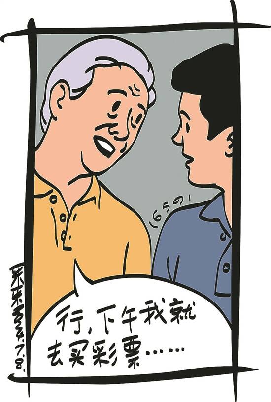 “彩票爷爷”是老徐俩孙女封他的外号。 老徐俩孙女一个叫佳佳,一个叫茜茜,是一对双胞胎。他退休那年,俩孙女才上小学,回家他就担负起了接送俩孙女上学的任务,每天早晨送俩孙女去学校,下午去学校接俩孙女回家。老徐每天按时按点接送,整天乐呵呵的很是开心。 转眼俩孙女读初中不需要接送了,老徐没事干了,渐渐觉得没了精神,心里有了一种寂寞和失落感。 儿子小徐见父亲整天无精打采的样子,知道父亲因生活平淡得了老年人的通病。便对父亲说:“老爸,我看你整天没精神的样子,没事你到对面那家福彩店里转转,那里好多彩民都是中老年人,去和他们聊聊天,高兴了买几注彩票,咱不期待能中大奖,但有事做你也不至于在家待着寂寞了。” 从未摸过彩票的老徐听后,觉得儿子说的没错,便说:“行,下午我就去彩票店买彩票,如果运气好中了大奖,奖金就留给我俩孙女将来上大学用。” 当天下午,老徐就去了彩票店,进店里先了解了彩票的玩法,之后想了想,觉得有一款彩票的名字和自己的双胞胎孙女名字里,都带“双”字,于是就买了两注这种彩票。 (汪小弟)