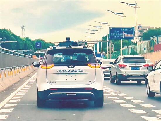 无人驾驶汽车在东莞开展道路测试(图片来自网络视频截图) |