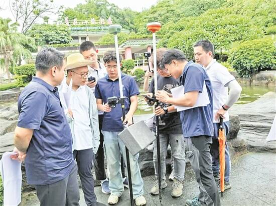 广东省第四次全国文物普查现场试点中,技术人员采用RTK设备进行文物点定位 |