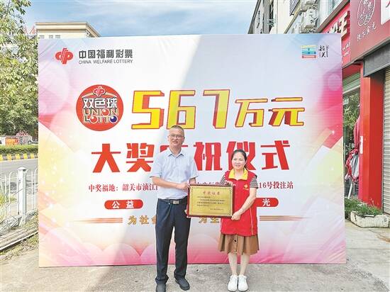 记者日前从韶关市福彩中心获悉,双色球第2024078期开奖,当期全国共中出一等奖17注,其中1注花落韶关浈江区大学路农场内步行街11铺44050316福彩销售站点。经检索,中奖彩票为一张“7+2”双色球复式票,中得1注一等奖和1注二等奖以及若干固定奖,中奖奖金达577万元。 近日,韶关44050316福彩销售站点举办了中奖庆祝活动。站点负责人张翠萍笑着说:“这张中奖彩票是我打出来的,这几天有不少购彩者前来站点沾沾喜气,十分热闹!福彩是公益事业,希望把福彩的公益理念传递给大家,能够有更多的购彩者收获幸运。” 中国福利彩票是国家为筹集社会公益资金,促进社会公益事业发展特许发行、依规销售的公益彩票。2024年上半年,韶关市共销售福利彩票1.41亿元,筹集公益金超4000万元,筹集的彩票公益金,广泛用于社会养老、社会救助、残疾人补助、孤残儿童福利等民生保障事业,在服务社会、助推经济发展等方面作出积极贡献。韶关福彩将秉持福彩“扶老、助残、救孤、济困”的发行宗旨,继续深耕公益慈善事业,筹集公益金,帮助困难群体。 (文/图 黄颖琳 安琦)