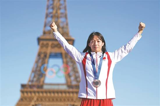 8月8日,冯紫琪在巴黎冠军公园留影 新华社发 |