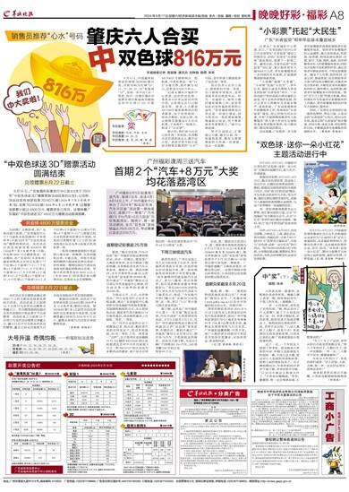 羊城晚报记者 黄颖琳 通讯员 刘梓颖 插图 采采 8月6日,中国福利彩票双色球第2024090期开奖,开奖号码为红球“07、11、17、24、31、32”和蓝球“12”,全国一共中出7注一等奖,其中一注落在肇庆市高要区南岸街道南亭路陈孔村中心巷口101号第44170627号销售网点。经检索,中奖彩票是一张“7+3”小复式票,投注额为42元,总奖金为816万多元。 记者从肇庆市福彩中心获悉,这次的双色球一等奖由6位幸运彩民共同中得,大奖得主近日已现身兑奖。原来,6人都是44170627福彩销售站点的老顾客,由于经常到同一间站点购彩、交流心得,站点销售员便提议6人合买彩票,于是他们一拍即合,组成了“合买团”。 据介绍,他们参与合买已经有两三年时间,经常购买双色球和快乐8,都中过小奖。此次中奖号码正是站点销售员推荐的“心水”号码,追号的第2期就收获了双色球一等奖。 站点负责人伍女士表示,看到彩民中得一等奖,自己感到非常高兴,也希望更多彩民收获幸运。作为一名福彩人,她努力做好福彩销售工作,还经常向彩民宣传福利彩票的公益性。“经营福彩销售站点其实是一份爱心事业,因为每卖出一张彩票就能筹集福彩公益金,用于帮助更多有需要的人。”她开心地说道。 坚守公益初心,汇聚爱心力量,随手公益,每一张福利彩票,都在为需要帮助的人传递一份善意、送去一份温暖。