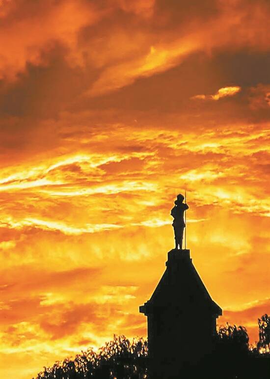 图\文 向安刚 8月1日傍晚7时许,我在湖南常德澧县兰江公园散步,看到天空东边彩虹、西边红霞,交相辉映。在满天红光中,公园内革命烈士纪念碑的剪影庄严耸立,碑顶身高2米、吹冲锋号的战士的英姿益发显得挺拔。 随手拍专用邮箱: ycwbwyb@163.com