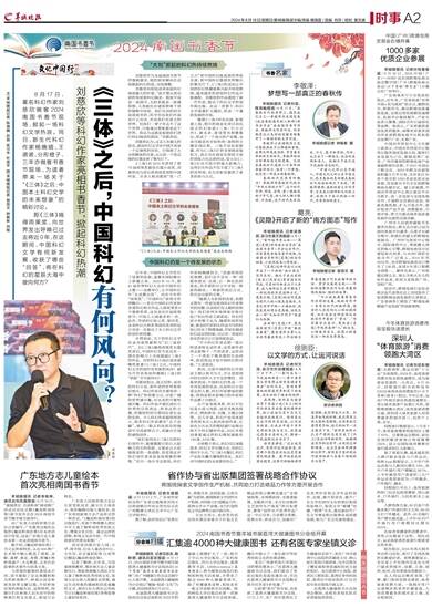 文/羊城晚报记者 陈晓楠 孙磊 实习生 叶恩平 图/羊城晚报记者 曾育文 钟振彬 刘畅 8月17日,著名科幻作家刘慈欣做客2024南国书香节现场,掀起一场科幻文学热浪。同日,新生代