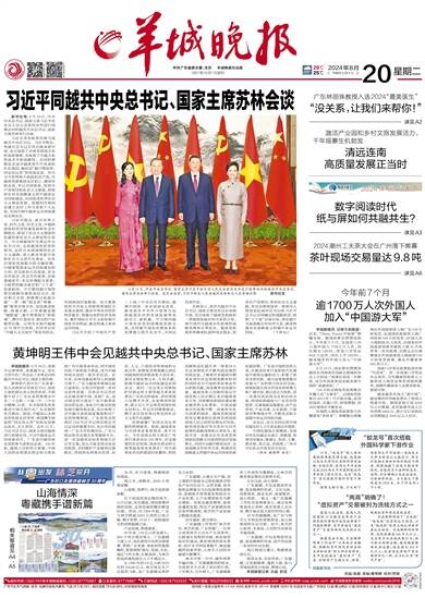 中共广东省委主管、主办 羊城晚报社出版 1957年10月1日创刊 29℃ 25℃ 2024年8月20日 甲辰年七月十七 星期二 责编/袁