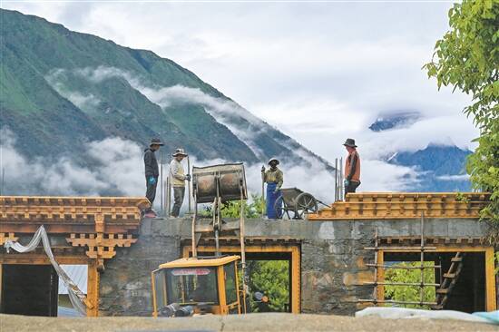 7月8日,工布江达县结巴村的民宿已成规模,随处可见正在建设的民宿 |