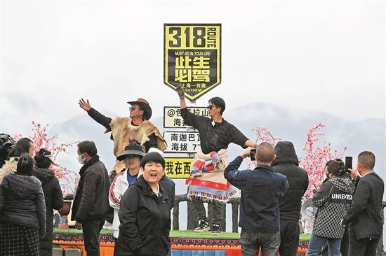 7月9日,色季拉山口318国道的打卡点,很多游客会在此停留观赏南迦巴瓦峰 |