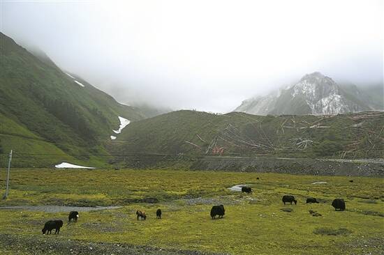 7月10日,波密进入墨脱的公路要经过雪山,嘎隆拉隧道就藏在其中 |