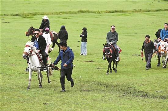 7月9日,鲁朗小镇,游客体验骑马的乐趣 |