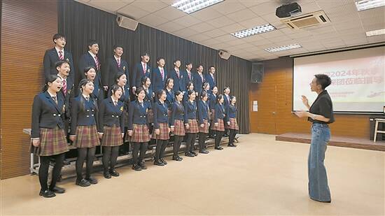 9月4日,广州市贸易职业高级中学青蛙合唱团学生在练习发声 羊城晚报记者 崔文灿 摄 |