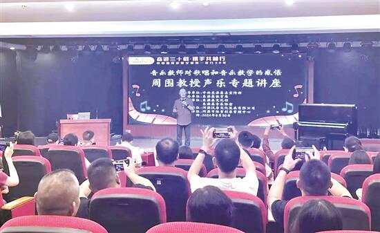 近日,由中共东源县委宣传部指导、河源市东源县教育局主办、中国体育彩票支持的著名男中音歌唱家、声乐教育家周围声乐专题讲座在东源县文化馆精彩开讲。东源县各学校的音乐老师、东源县文化馆音乐指导老师、东源县音协会员等近200人聆听了本次课堂讲座。 据了解,此次讲座主题为“音乐老师对音乐歌唱和音乐教学的感悟”,受众面向声乐歌唱爱好者及音乐老师。 讲座中,周围分享了作为一名音乐老师对音乐歌唱和音乐教学的理解和感悟,就歌唱技巧、歌唱注意事项和学习目的及方法进行了详细讲解及演示。周围声情并茂的讲授赢得了现场学员的热烈掌声,“一对一”的现场教学更是令声乐专业学生和爱好者受益匪浅。 现场的一位老师激动地表示:“周教授在声乐公益课上展现出的专业素养和人格魅力令人钦佩。他不仅传授声乐知识,还注重培养我们的音乐素养和审美能力。他的教导将伴随我们,让我们在音乐的道路上越走越远。” 一直以来,中国体育彩票作为国家公益彩票,始终秉持“来之于民、用之于民”的发行宗旨,践行教育助学公益使命,积极推进“建设负责任、可信赖、高质量发展的国家公益彩票”,不仅积极助力各项文化活动及体育赛事开展,还为河源各项公益活动作出积极贡献,以实际行动彰显公益体彩的社会责任。 (文/图 胡彦 粤体彩)